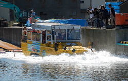 見せ場の海上走行では、釧路港(釧路市港町)の船揚場から